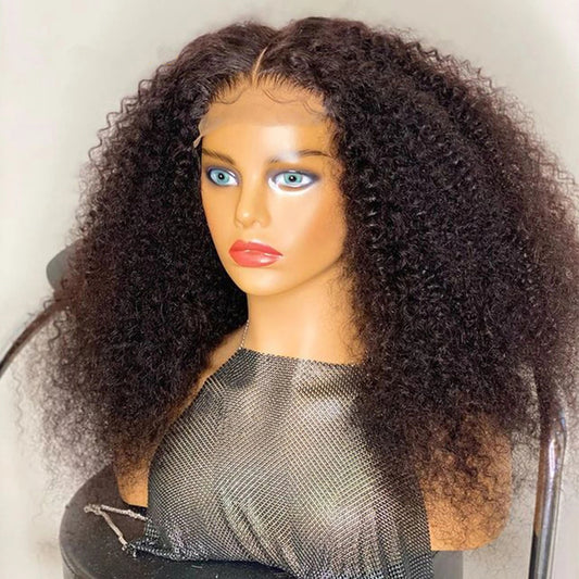 Glueless Afro Kinky Curly Wig Boom Hair Pre Plucked Cuticle Aligned Virgin Hair Natural Black Lace Front Wigs